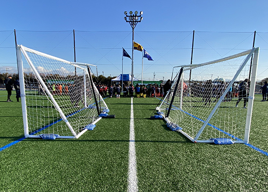 各拠点に車で持ち運んで使用したり、時にはフットサルゴールを寝かせて活用するなど、あらゆる場面で必要とされていました。ミニゴールの種類は、重量があり非常に高強度の本格的なゴールや、移動に便利な折り畳み式の簡易的なゴールなど数多くあります。
