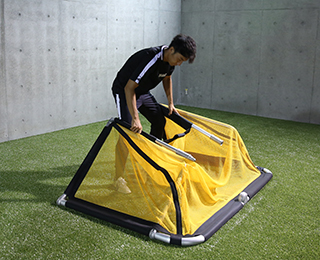 ■使用環境により耐久性に影響が出るので、使用時以外は収納して保管することをおすすめします。 ■屋内でも使用可能ですが、使用する場合は設置面がアルミですので、傷など十分ご注意ください。 ■強風時は倒れる可能性がありますので、ペグで固定するなどしてしっかりと固定してください。 ■ぶら下がったりゴールに腰掛けるなどの行為は、怪我の恐れがあるので絶対にしないでください。